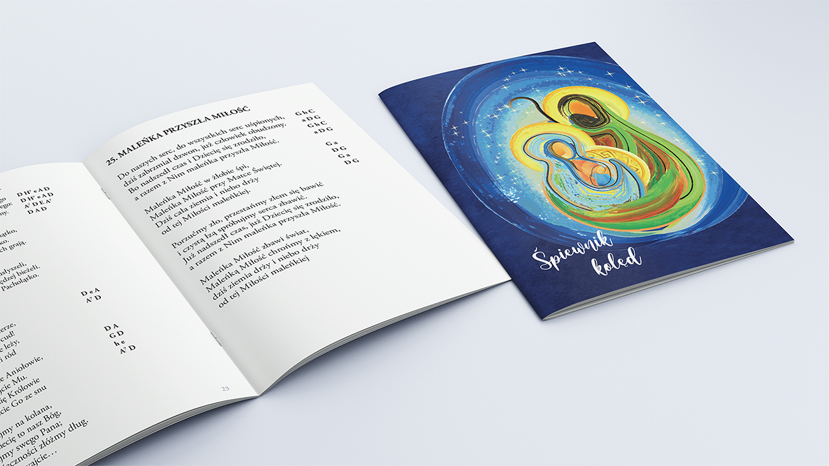 Śpiewnik kolędowy w formacie A5, z chwytami na gitarę. Zawiera 46 kolęd.