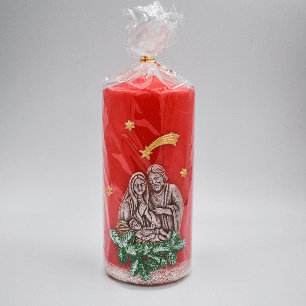 Świeca Bożonarodzeniowa czerwona św. Rodzina z gwiazdą 15 cm