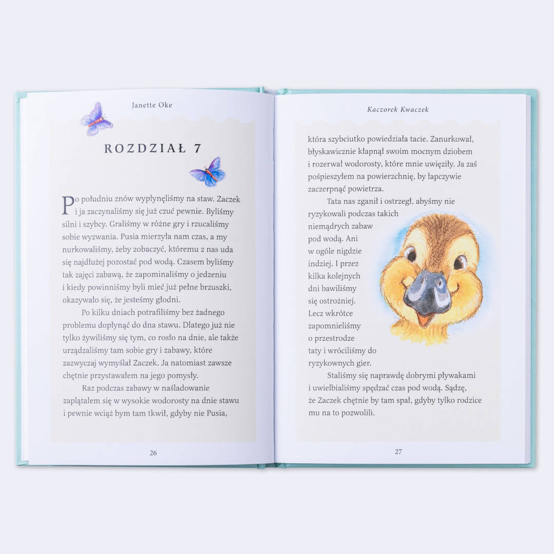 Kaczorek Kwaczek, podobnie jak jego bracia i siostry, jest bardzo zajęty. Cała gromadka uczy się wszystkiego, co trzeba wiedzieć o byciu kaczką: jak się pływa, gdzie zdobyć najpyszniejsze jedzenie oraz w jaki sposób ustrzec się przed czyhającymi niebezpieczeństwami. Każde z nich, a zwłaszcza brat Kwaczka, Zaczek, bardzo by już chciał dorosnąć i dowiedzieć się wszystkiego, co wiedzieć należy.