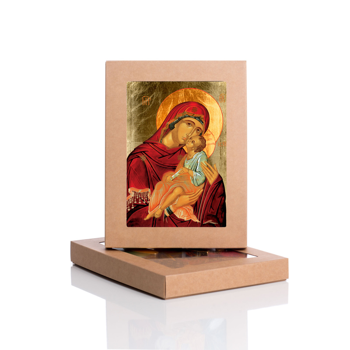 Ikona religijna przedstawia wizerunek Matki Bożej Czułej - Eleusy. Wszystkie ikony dostępne w naszej ofercie wykonane są z najwyższej jakości materiałów. Drewno wykorzystywane do produkcji ikon dobierane jest w niezwykle staranny sposób. Wizerunek naniesiony na ręcznie złoconą deskę. Produkt wspaniale sprawdzi się jako jedyny w swoim rodzaju upominek dla najbliższych.