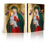 Ikona religijna przedstawia wizerunek Świętej Anny i Najświętszej Maryi Panny. Wszystkie ikony dostępne w naszej ofercie wykonane są z najwyższej jakości materiałów. Drewno wykorzystywane do produkcji ikon dobierane jest w niezwykle staranny sposób. Wizerunek naniesiony na ręcznie złoconą deskę. Produkt wspaniale sprawdzi się jako jedyny w swoim rodzaju upominek dla najbliższych.