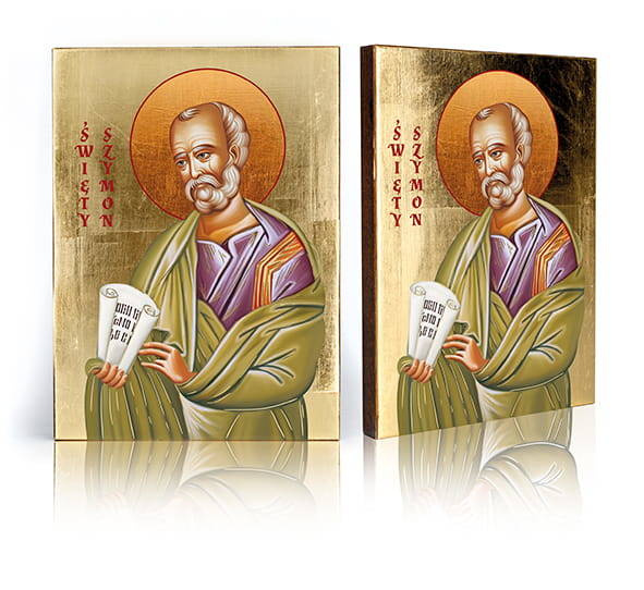 Ikona religijna przedstawia wizerunek Świętego Szymona. Wszystkie ikony dostępne w naszej ofercie wykonane są z najwyższej jakości materiałów. Drewno wykorzystywane do produkcji ikon dobierane jest w niezwykle staranny sposób. Wizerunek naniesiony na ręcznie złoconą deskę. Produkt wspaniale sprawdzi się jako jedyny w swoim rodzaju upominek dla najbliższych.