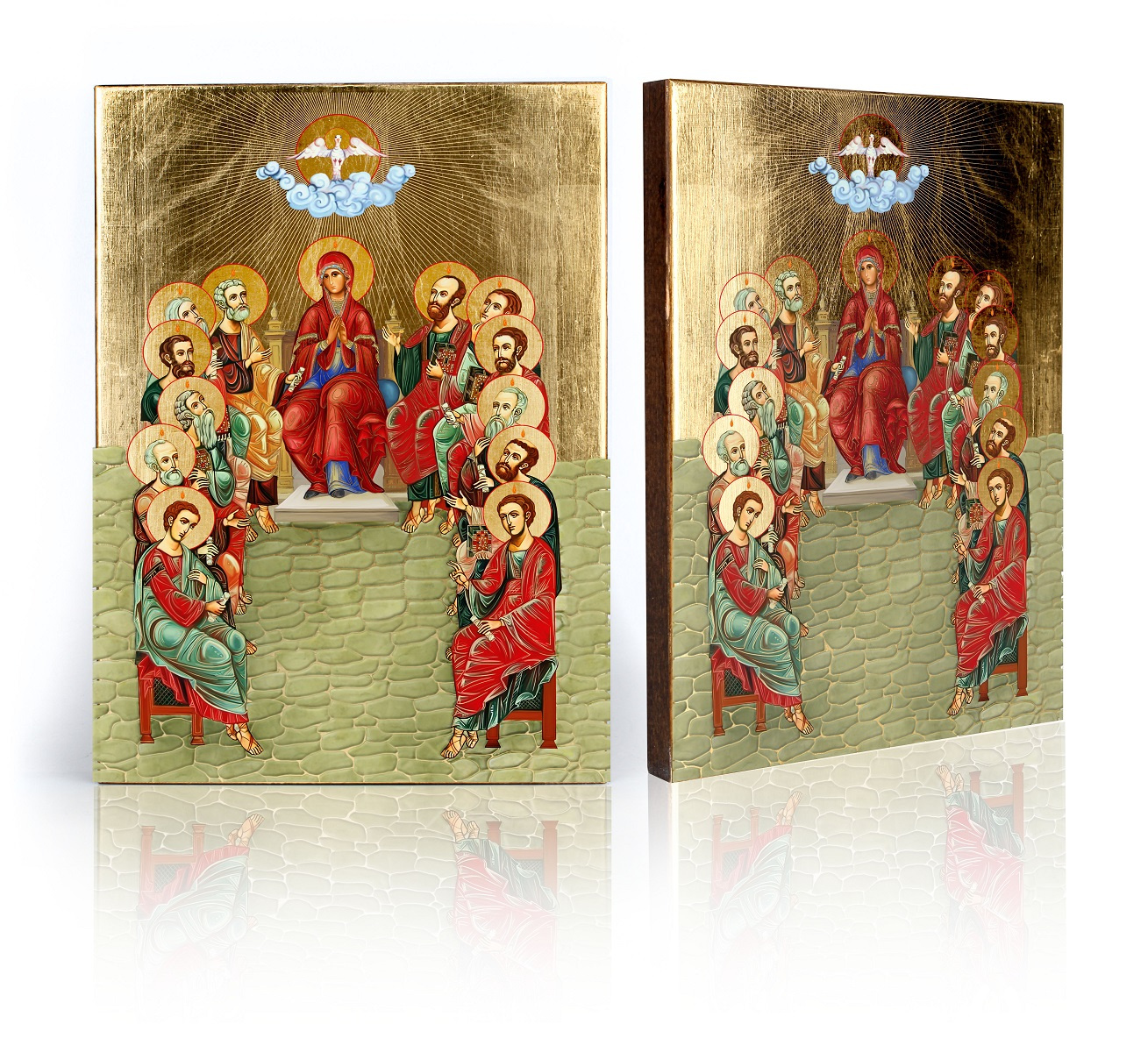Ikona religijna przedstawia scenę Zesłania Ducha Świętego. Wszystkie ikony dostępne w naszej ofercie wykonane są z najwyższej jakości materiałów. Drewno wykorzystywane do produkcji ikon dobierane jest w niezwykle staranny sposób. Wizerunek naniesiony na ręcznie złoconą deskę. Produkt wspaniale sprawdzi się jako jedyny w swoim rodzaju upominek dla najbliższych.