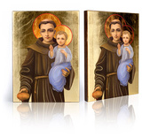Ikona religijna przedstawia wizerunek Świętego Antoniego. Wszystkie ikony dostępne w naszej ofercie wykonane są z najwyższej jakości materiałów. Drewno wykorzystywane do produkcji ikon dobierane jest w niezwykle staranny sposób. Wizerunek naniesiony na ręcznie złoconą deskę. Produkt wspaniale sprawdzi się jako jedyny w swoim rodzaju upominek dla najbliższych.