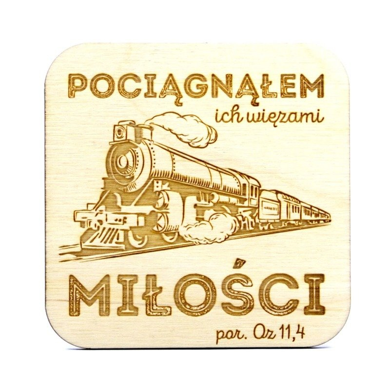 Podstawka pod kubek z cytatem z Pisma Świętego: „Pociągnąłem ich więzami miłości” Oz 11, 4.