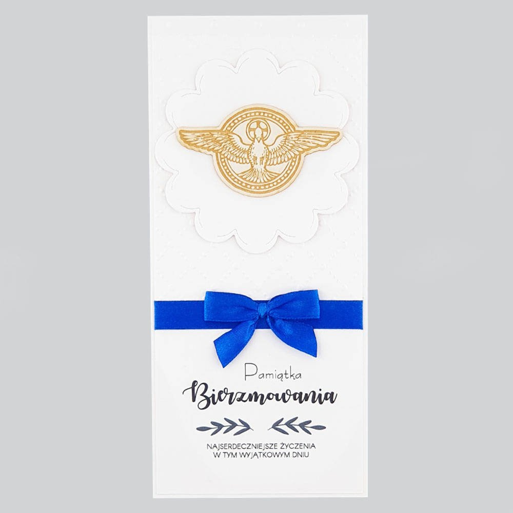 Ręcznie wykonana kartka na bierzmowanie z tekturową gołębicą.
