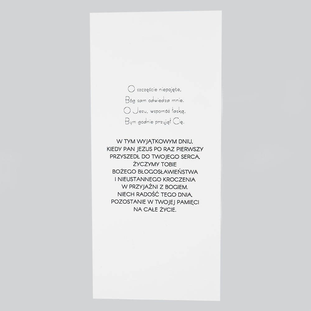 Ręcznie wykonana kartka na Pierwszą Komunię Świętą z tekturową hostią.