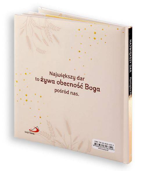 Szukasz zachwycającej pamiątki tego wyjątkowego dnia w życiu dziecka, jakim jest Pierwsza Komunia Święta? Sięgnij po album “Największy dar”, który, zapełniony różnorodnymi informacjami dotyczącymi uroczystości, z upływem czasu będzie nabierał niezwykłej wartości - nie tej materialnej, ale emocjonalnej, przepełnionej ciepłymi i radosnymi wspomnieniami.