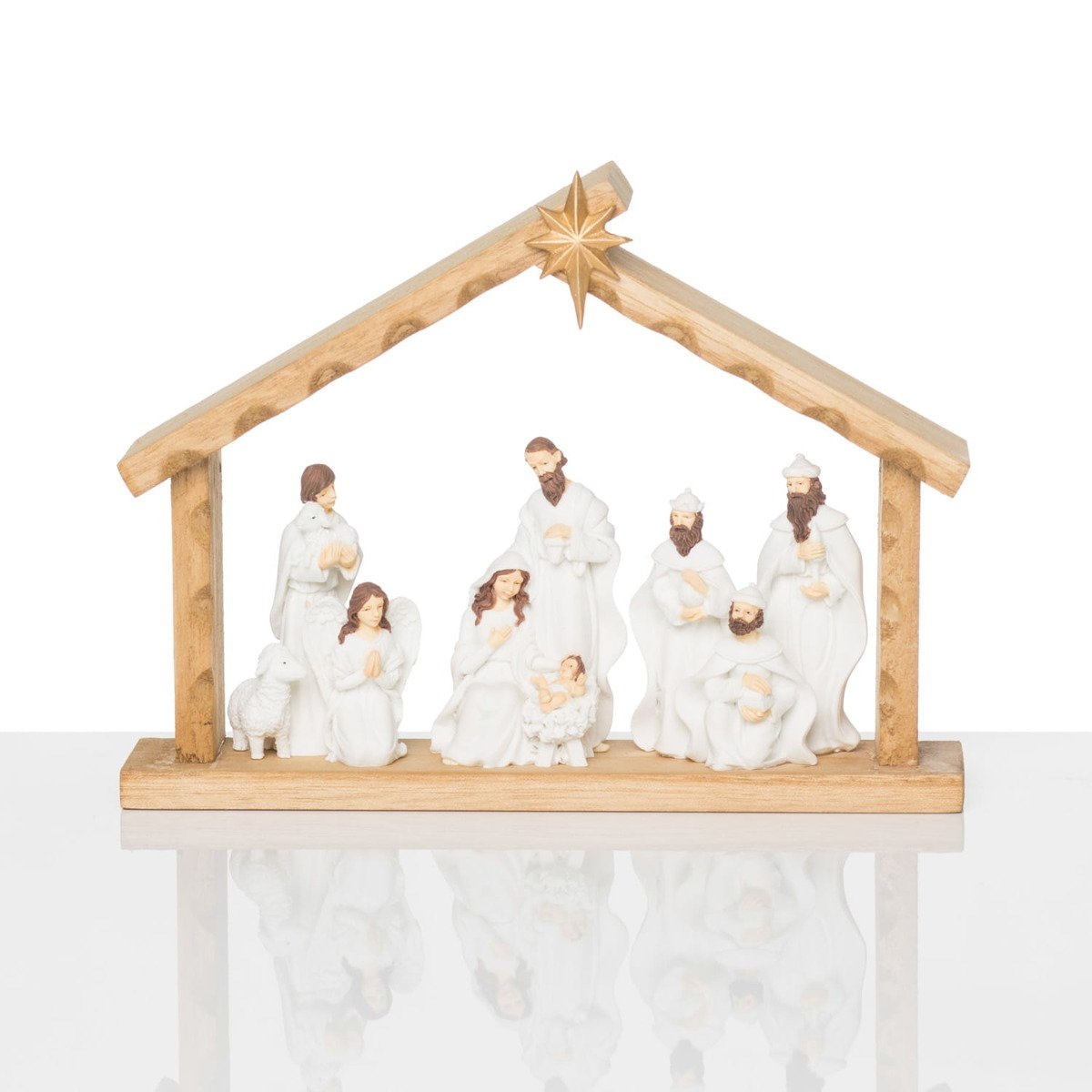 Szopka bożonarodzeniowa 14 x 18 x 4 cm. Wykonana z żywicy. ręcznie malowana.