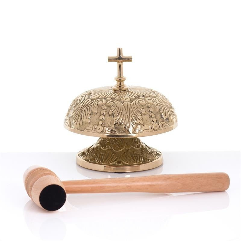 Gong pojedynczy, jednotonowy, zdobiony. Zabezpieczony lakierem bezbarwnym. Młotek drewniany w komplecie.