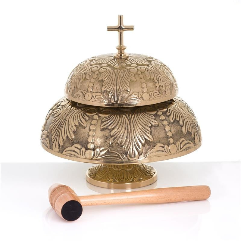 Gong podwójny, dwutonowy, zdobiony. Zabezpieczony lakierem bezbarwnym. Młotek drewniany w komplecie.
