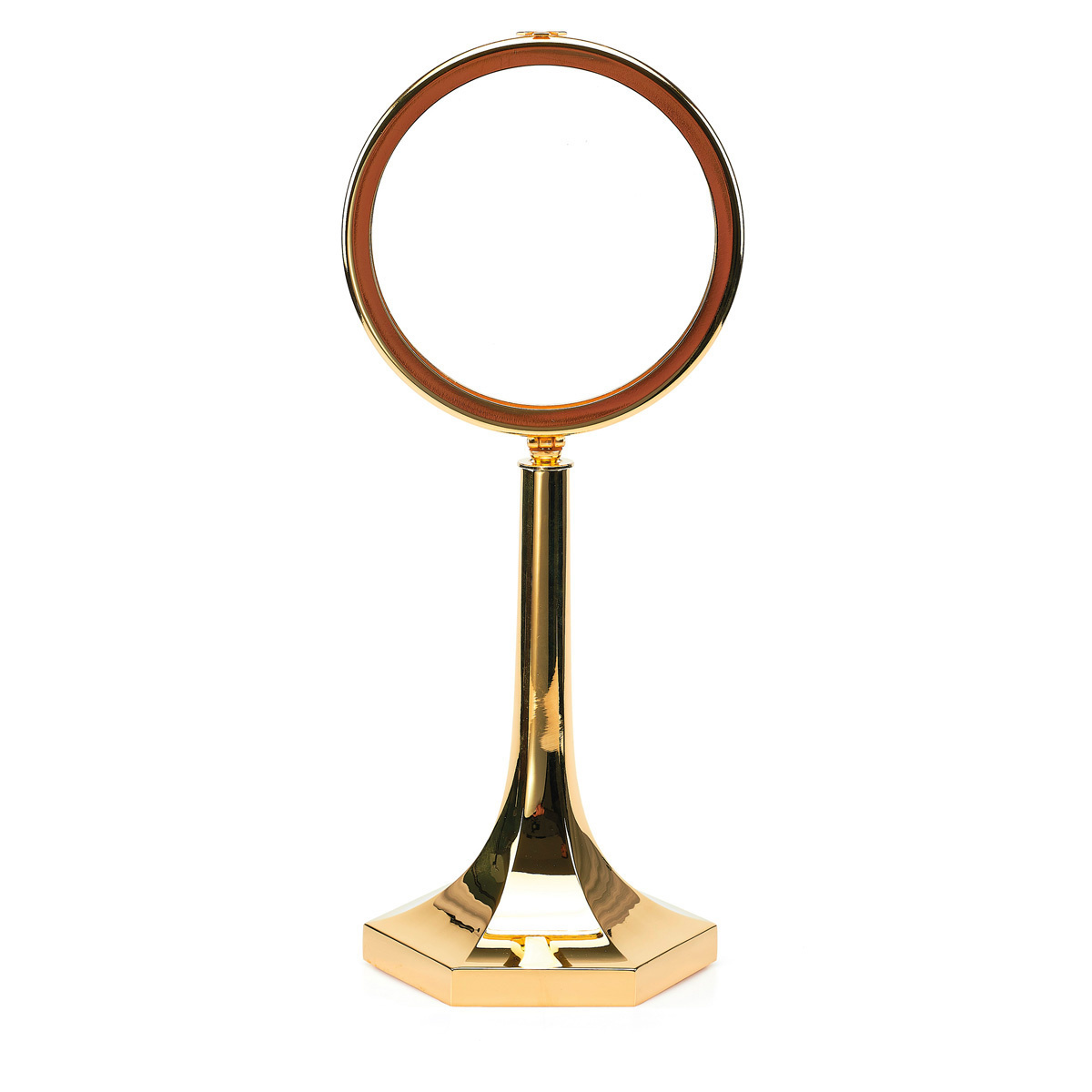 Podkreśl godność Najświętszego Sakramentu w Twojej świątyni dzięki naszej eleganckiej, wysokiej kustodii, wykonanej z precyzyjnego mosiężnego odlewu pokrytego czystym złotem. Jej prosta, a zarazem dostojna forma z sześciokątną podstawą sprawia, że jest to idealne naczynie do godnego przechowywania i ekspozycji Hostii w tabernakulum lub podczas procesji z feretronem.