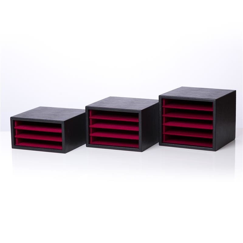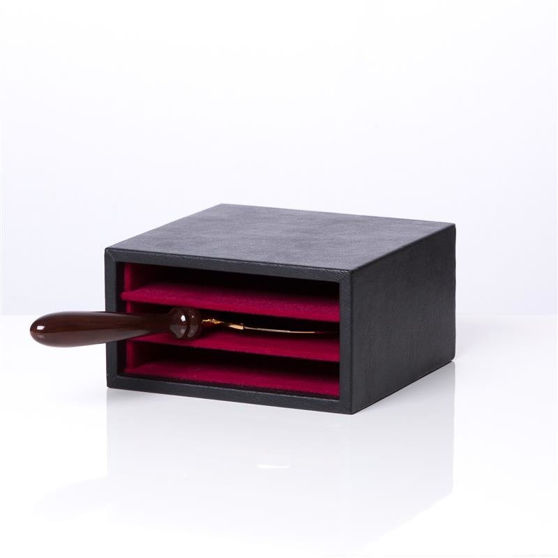 Etui na trzy pateny. Materiał wewnętrzny miły w dotyku w kolorze bordowym. Kolor zewnetrzny czarny.