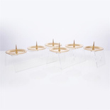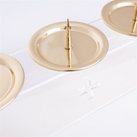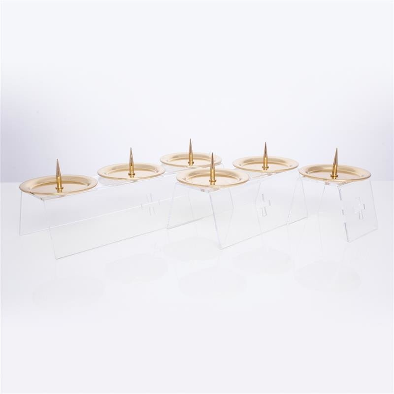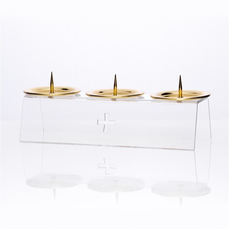 Lichtarz potrójny wykonany z pleksi z mosiężnym tależykiem oraz grotem. Na jednym z boków widnieje wycięty krzyżyk.