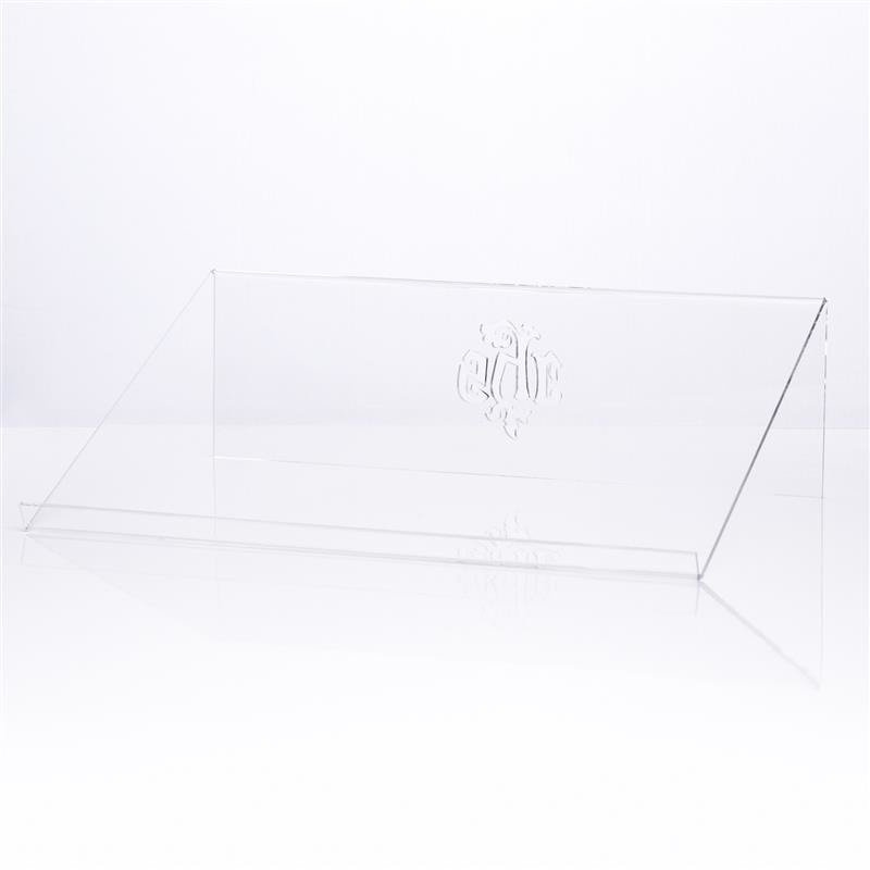 Pulpit duży wykonany z pleksi. Na boku widnieje wycięty krzyżyk.